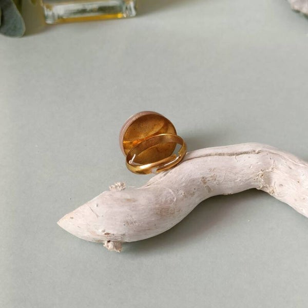 Bague ajustable en acier inoxydable doré avec pierre du soleil ronde - Rayonnez de positivité !