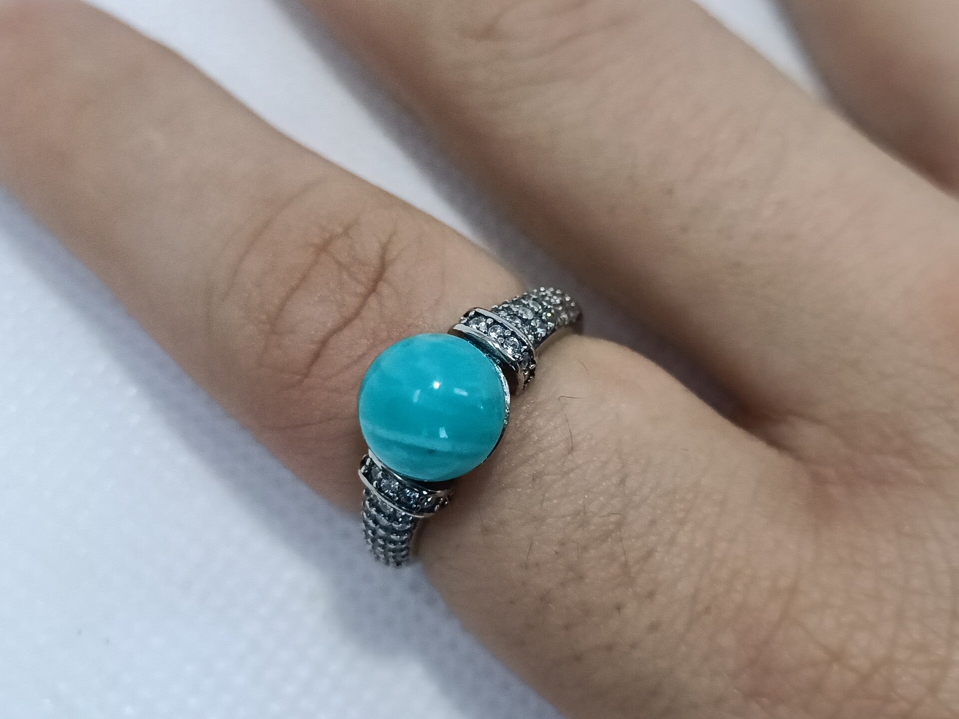 Sublimez votre style avec cette élégante bague en argent sterling 925, ornée d'une authentique pierre d'amazonite. Cette bague est le bijou parfait pour ajouter une touche de couleur et de sérénité à votre quotidien.