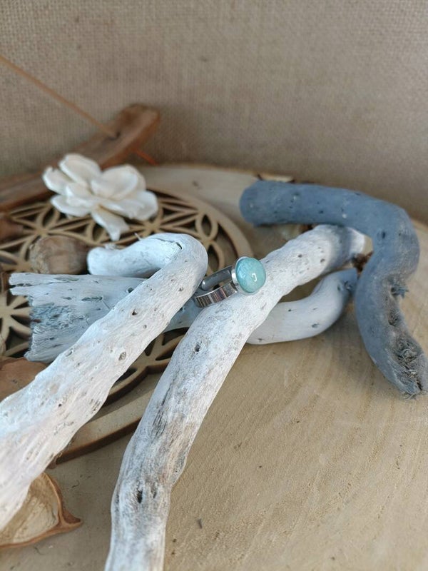 Découvrez notre bague ajustable en acier inoxydable, ornée d'une pierre d'amazonite ronde. Un bijou unique, alliant la robustesse de l'acier à la douceur de l'amazonite. Parfait pour un style naturel et élégant.