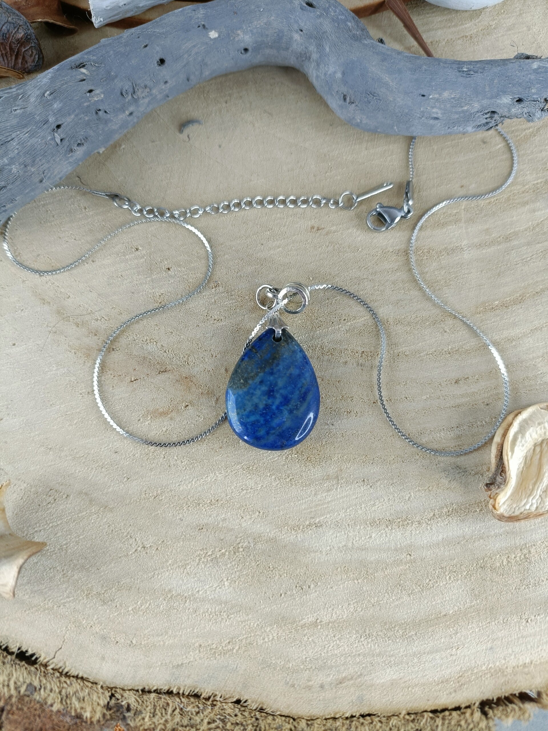 Collier Chaîne Inoxydable avec Pendentif Lapis Lazuli en Forme de Goutte - Élégance et Vertus Naturelles