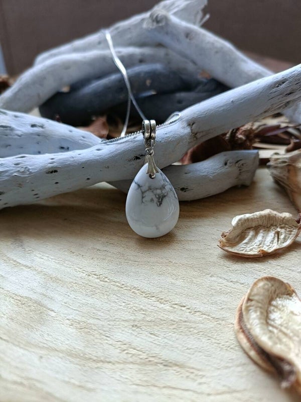 - Design élégant : Pendentif en forme de goutte mettant en valeur la beauté naturelle de l'howlite.